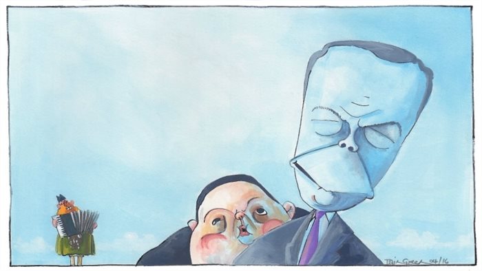 Eventually the main act arrived. Coburn and Farage marched side-by-side down the aisle, while the accordionist played ‘Scotland the Brave’. Farage grinned like an imbecile. It was like some hellish wedding. Coburn opened proceedings, describing Farage as “one of the greatest speakers of our times” and claiming 75 per cent of Scotland’s laws are made in Brussels.