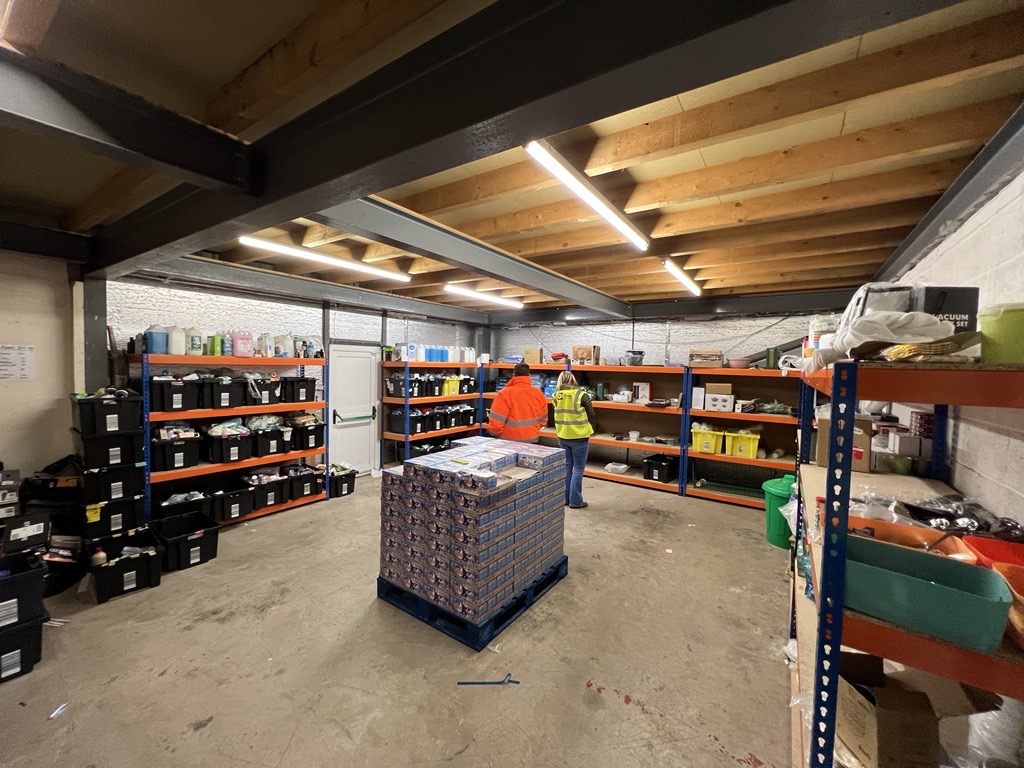 There is very little room for more goods to be stored once the pallets are offloaded, so I ask her how long all of this will be here for. “Not long, by the end of the week it’ll be away. We’ve worked out that if we didn’t refill this room every 72 hours it would be empty,” she tells me.