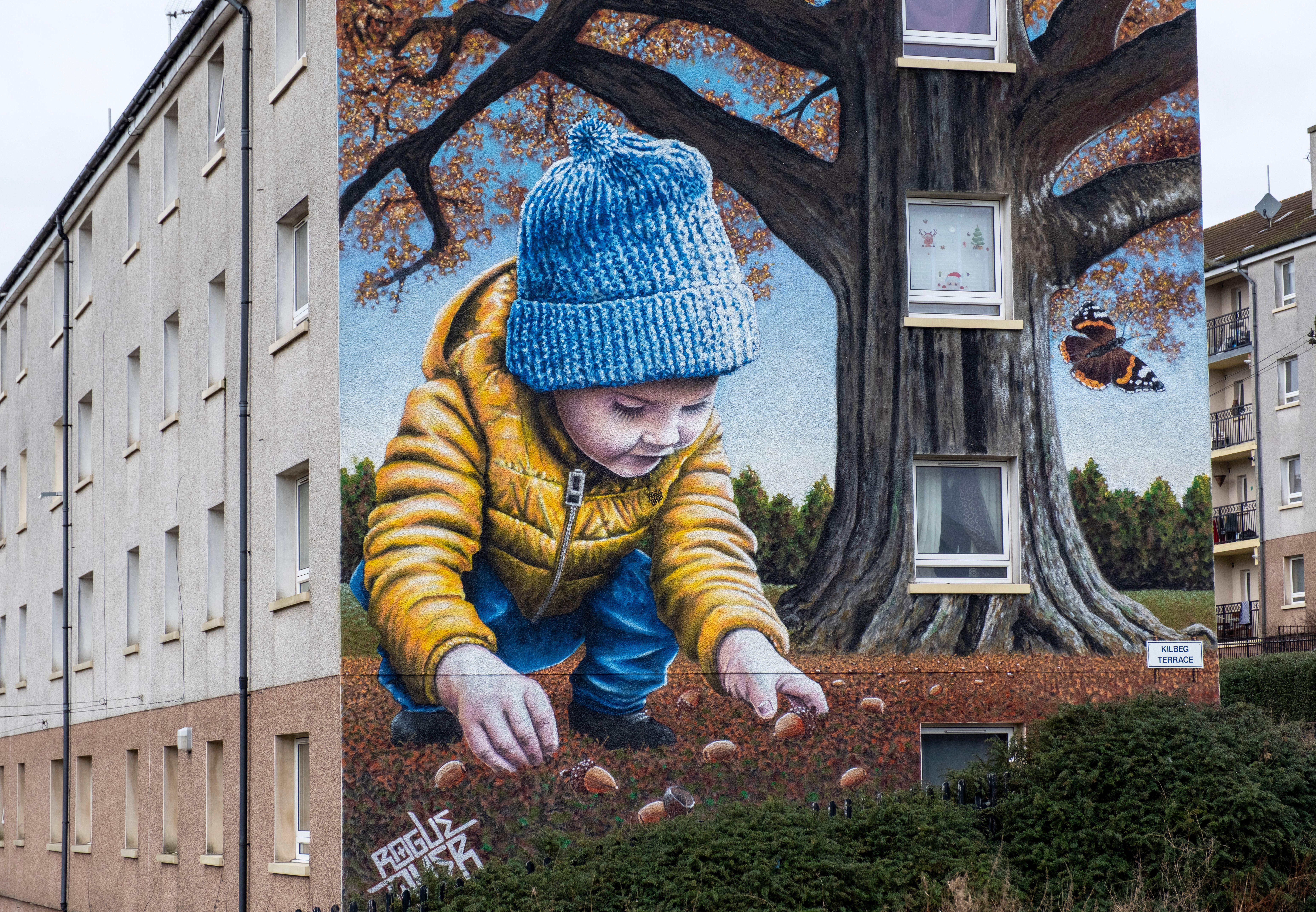 Mural by street artist Rogue One for Glen Oaks Housing Association, Glasgow | Alamy