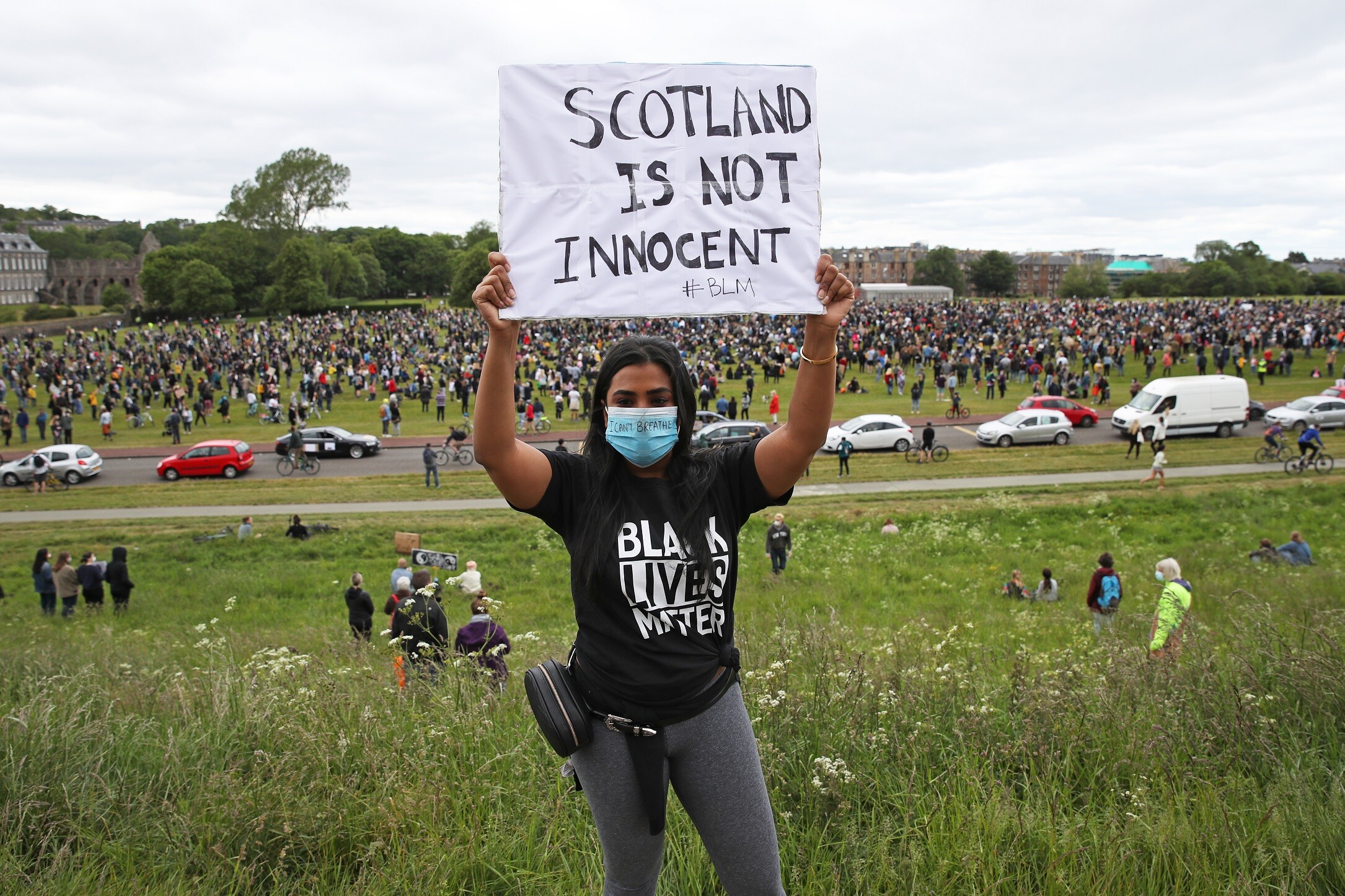 In Scotland, thousands gathered in Edinburgh and Glasgow to lend their voices to the calls for justice, despite warnings to adhere to social distancing measures and stay at home. In Holyrood Park, a stone’s throw from the parliament, thousands gathered, spread out over the grass and up the side of Arthur’s Seat, holding placards with “Black Lives Matter” and “I can’t breathe” to listen to speakers address a problem Scotland would prefer to ignore.