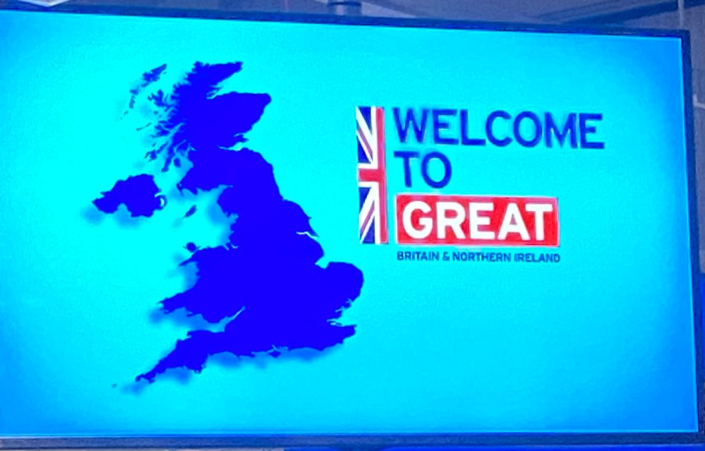 The graphics, used in airports as part of Westminster's "GREAT" campaign, show the UK mainland, plus Northern Ireland and Scottish islands including Skye and the Outer Hebrides.